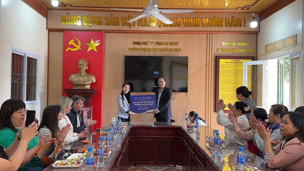 Im Rahmen ihrer Besuchsreise besuchte die Delegation der deutschen Unternehmen und Flycom die An Sinh Mittelschule in der Hai Phong Provinz, an der viele unserer heutigen Schüler gelernt haben.
